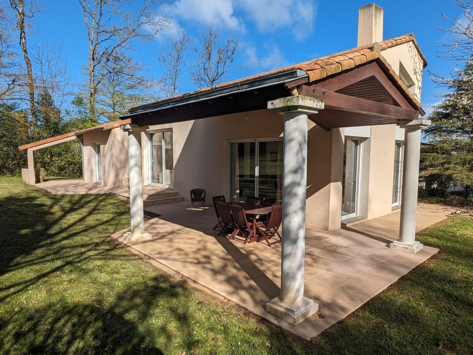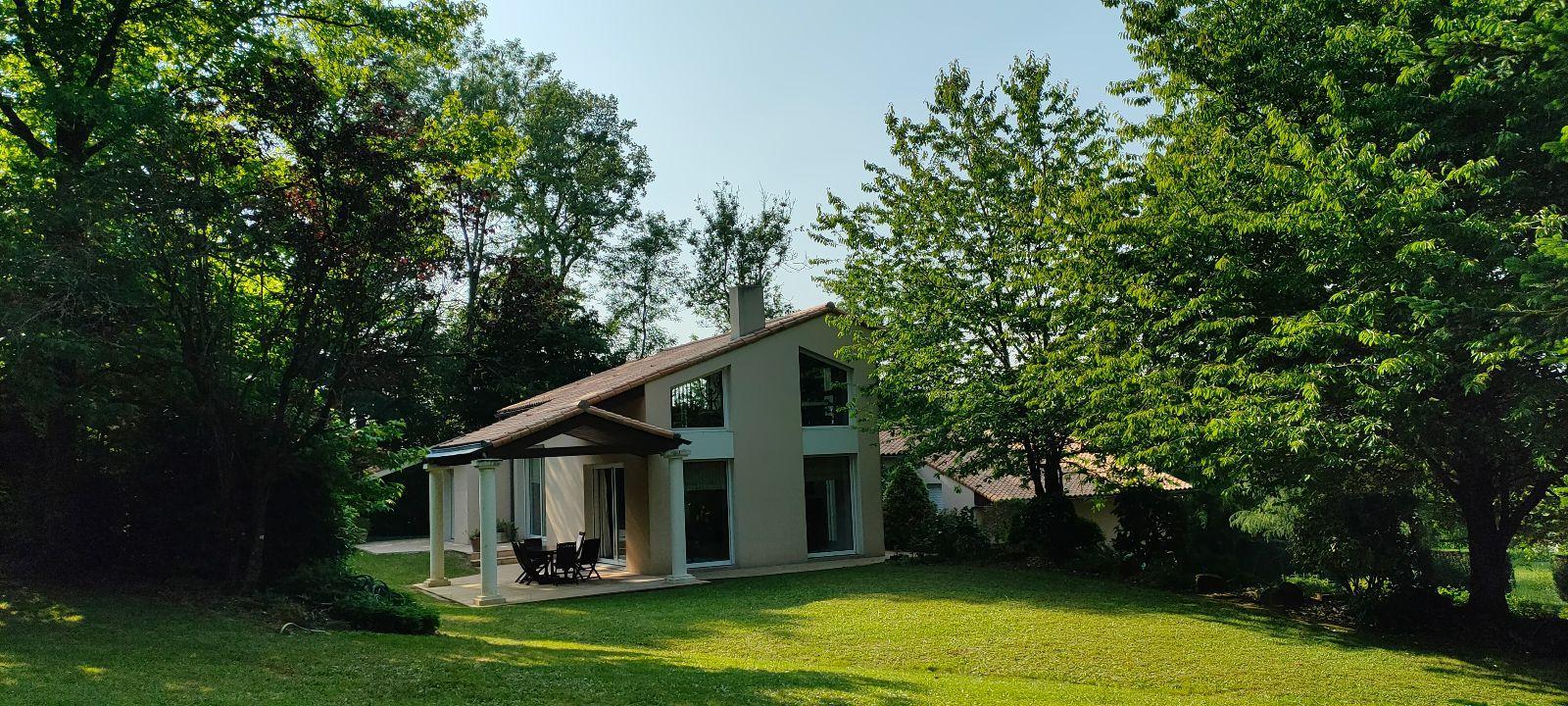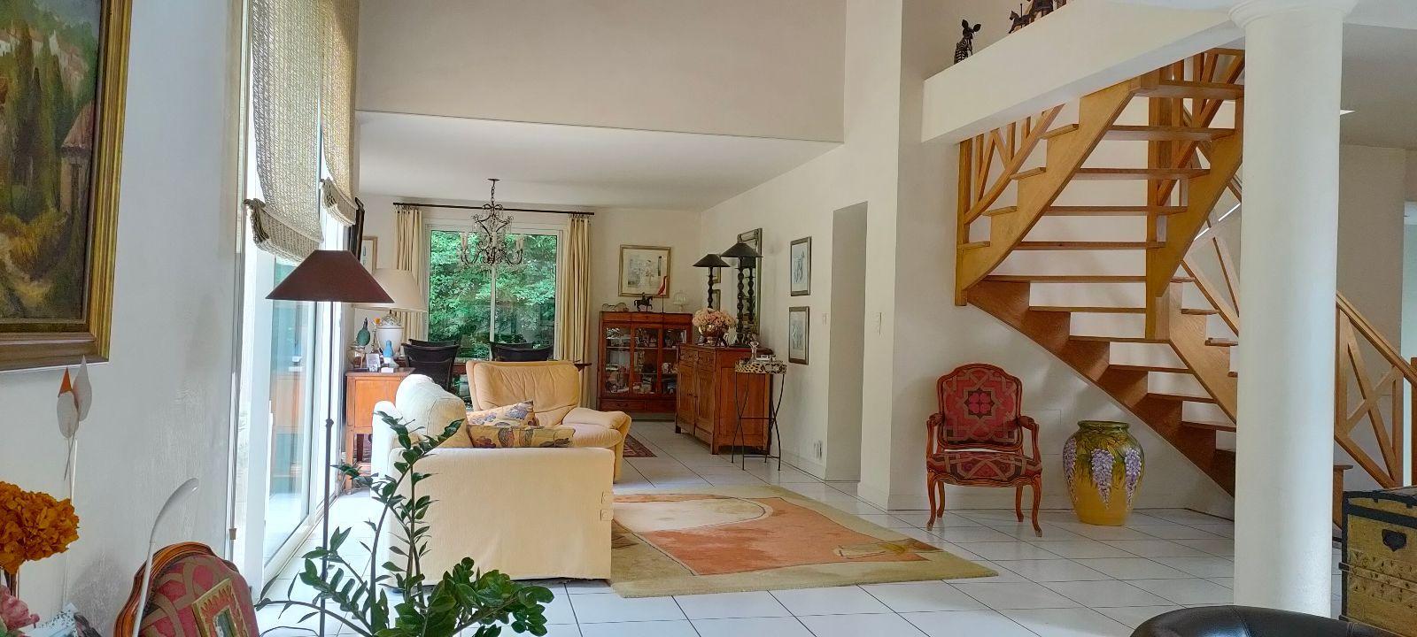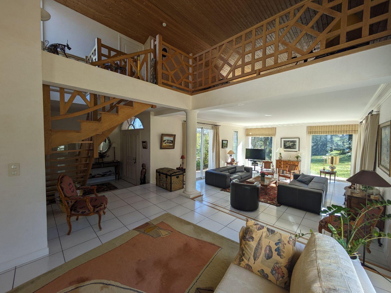 LES HERBIERS – Découvrez ce bien d’exception à proximité immédiate du centre-ville ! Cette magnifique maison d’architecte offre 254 m² habitables sur une parcelle arborée et sans vis-à-vis de 3000 m² ! Le vaste hall d’entrée dessert un salon/séjour de 77 m² aux espaces parfaitement définis et baignés de lumière grâce aux 7 baies que compte la pièce de vie ! En prolongement, une cuisine familiale de 20 m², aménagée et équipée, puis un wc avec lave-mains. La partie nuit se compose de 3 premières chambres et une sde ainsi qu’une suite parentale avec sa chambre, son balcon, son grand dressing et sa sdb avec wc. A l’étage, une 5ème chambre avec terrasse privative, une mezzanine de 54 m² idéale pour un espace bureau, salle de jeux ou cloisonnement d’une 6ème chambre ! Le rez-de jardin propose une belle pièce aménagée de 29 m² avec accès indépendant offrant diverses alternatives : chambre, bureau pour activité indépendante, studio… Enfin, le sous-sol permet un stockage conséquent avec garage, lingerie et atelier. Chauffage au sol gaz de ville (chaudière de 2019) et tout à l’égout. Les prestations rares ne pourront que vous séduire, à seulement 2 minutes de l’hyper centre et 10 minutes du Parc du Puy du Fou !